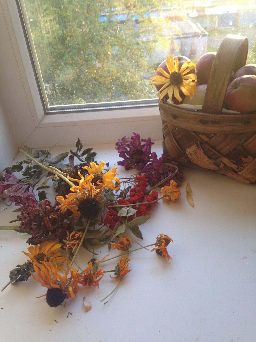 #тема осени. Я родилась в сентябре. Может, поэтому осень мне нравится больше, чем другие времена года. Тем более, когда бываю в лесу.. Особенный какой-то воздух, настроение, красота насыщенная, но, в то же время, какая-то успокаивающая.. Строки Пушкина сразу возникают .. : " Осенняя пора, очей очарованье.." В таких случаях я часто жалею, что не умею рисовать. Представляю свой #коллаж - гербарий из того, что собрала на клумбах. #Цвета #осени - желтые, оранжевые, красноватые.. Такая богатая #палитра, которую хочется отобразить всеми доступными средствами. Поскольку я не умею рисовать, то использую другие возможности и приемы. Включаю красивую музыку и начинаю раскладывать высушенные цветы. Беру шпаклевку и прикрепляю их к фанере. Потом понимаю, что фона просто нет, снимаю все и достаю восковые карандаши. Как-то , несколько лет назад, я купила #восковые #карандаши Не знаю, почему, но они мне понравились. Не использовала какое-то количество лет, пока не попала в руки #фанера. Мне