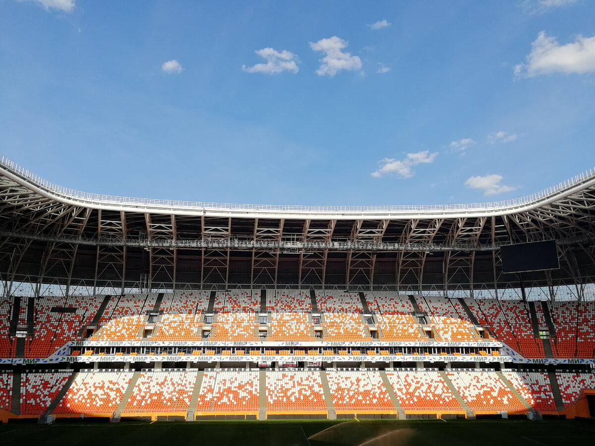 Сегодня хочу рассказать про самый крупный стадион Мордовии: Мордовия-Арена. Футбольный стадион этот находится в Саранске. Автором проекта являлся ФГУП «Спорт-Ин». Стадион строили с 2010 года. Официально открыли же его 9 апреля 2018 года, то есть буквально накануне Мундиаля. На стадионе этом прошли четыре матча группового этапа чемпионата мира по футболу 2018. Мы побывали на стадионе в 2019 году в ходе пресс-тура, то есть водили нас по всем помещениям, все показали и рассказали. Что сказать о стадионе, помимо официальной информации? Трава здесь жутко нежная и дорогая. Серьезно. Вообще содержание этого объекта влетает республиканскому бюджету в хорошую копеечку. не окупает себя даже и наполовину. Ну, оно и понятно, объект строили за колхозные деньги, тогда не об окупаемости думали отнюдь. И, тем не менее, кроме коммуналку самая большая статья расходов - содержание травяного покрова в идеальном состоянии. Его там стригут, поливают регулярно, на зиму укрывают (крыши-то нет ведь). За те п