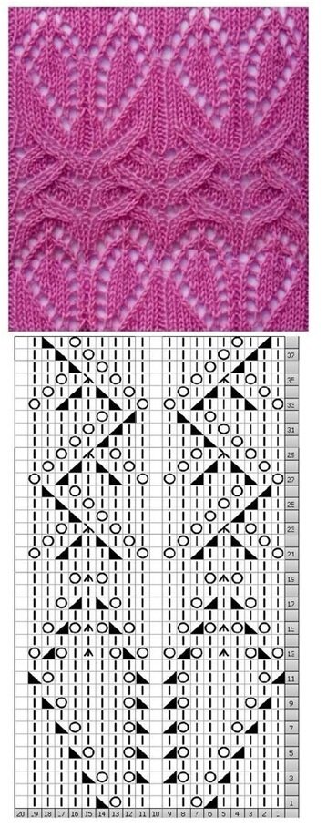 В моих планах связать палантин. Решила идеи для палантина поискать на просторах Интернета. Особенно нравятся ажурные узоры. Все свои "хотелки" и понравившиеся узоры публикую в данной статье. Вдруг и вам пригодится. Ажурный узор №1 Ажурный узор №2 Ажурный узор №3 Ажурный узор №4 Белый палантин На спицы набирать 87 петель и связать 5 р. платочной вязкой. В шестом (изнаночном) ряду равномерно прибавить 17 петель. В результате должно получиться 104 петли. Дальше вяжите по схеме: раппорт повторять 3 раза. Через 138см перейти на платочную вязку, провязав 3 ряда, закрыть все петли. Ажурный узор №5 Ажурный узор №6 Красивый ажурный узор №7 Раппорт узора составляет 20 петель + 2 петли до раппорта + 1 петля после раппорта + 2 кромочные и 24 ряда. На схеме даны только лицевые (нечетные) ряды. В изнаночных (четных) рядах все петли вязать по рисунку. В ширину начать с кромочной петли, петель до раппорта, повторять раппорт, закончить петлей после раппорта и кромочной петлей. В высоту повторить