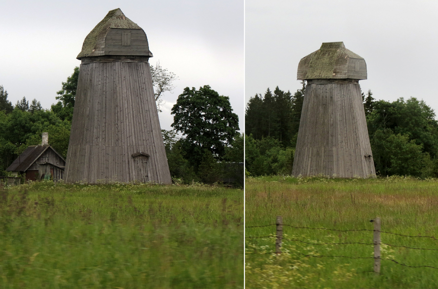 Харью-Ристи оказалось самым дальним пунктом нашего вояжа на запад от Таллина. Свернули, вдобавок, не на ту дорогу, однако эта ошибка вывела нас к бескрылой деревянной мельнице: