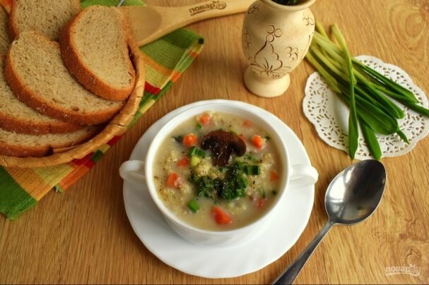 Пшенный сливочный суп с грибами и первой вешней зеленью, черемшой. Этот смачный суп с бархатистой текстурой готовится стремительно! Для вас придется издержать всего несколько минут на вырезку ингредиентов! Описание изготовления: Делюсь с вами рецептом, как приготовить пшенный суп с грибами. Он готовится без прибавления обжаренных овощей, потому непревзойденно подойдет людям, следящим за своим здоровьем. Суп выходит ласковым, благоуханным, сытным и весьма смачным. Готовьте с наслаждением! Предназначение: