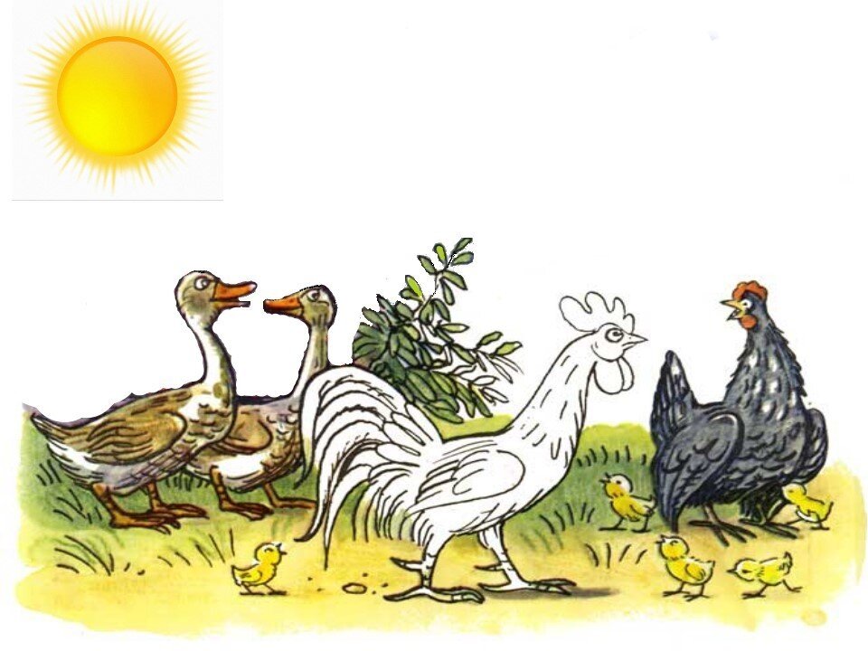 Сутеев В.Г. Расоме расми Хурӯсро кашид, аммо ранг кардани ӯро аз хотираш баровард. Ҳамин тавр Хурӯс ба сайру гашт баромад. Дар саҳни ҳавлӣ ҳама ба ӯ нигоҳ мекарданду механдиданд. Ҳатто чуҷаҳо ҳам. - Чаро онҳо ба ман механданд? - пурсид Хурӯс аз саг.