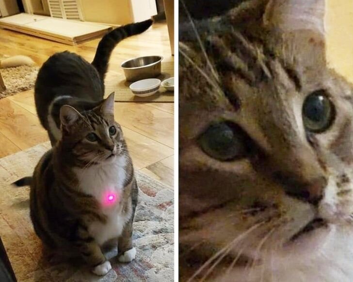Каждый из нас, у кого есть питомец, наверняка давно научился по некоторым признакам определять настроение своего любимца. Например, если у кошки задран хвост и она бежит с мурчанием к хозяину, это означает что-то вроде «Привет, я так рада тебя видеть!». Если собака виляет хвостом так, будто она вот-вот взлетит, значит, она безмерно счастлива. Но некоторые животные, пытаясь подражать человеческой мимике, иногда такую мордочку скорчат, что хоть стой, хоть падай. «В тот день Финн узнал, откуда берется «красная точка» Кого-то поймали на том, что он носит женскую одежду «Аптекарь не обратил на нее внимания и не назвал ее милой. Она к такому не привыкла и искренне расстроилась» «Это мой кот Джеффри, а это его любимое место» «Иногда у нее такое забавное выражение морды» «Ей уже 16 лет, но она до сих пор остается королевой «щенячьих глазок» Наверное, он представляет себя на борту «Титаника» «Эта улыбка старика Эда — „Меня усыновляют!“ — одновременно красива и полна гордости» «Она такая м