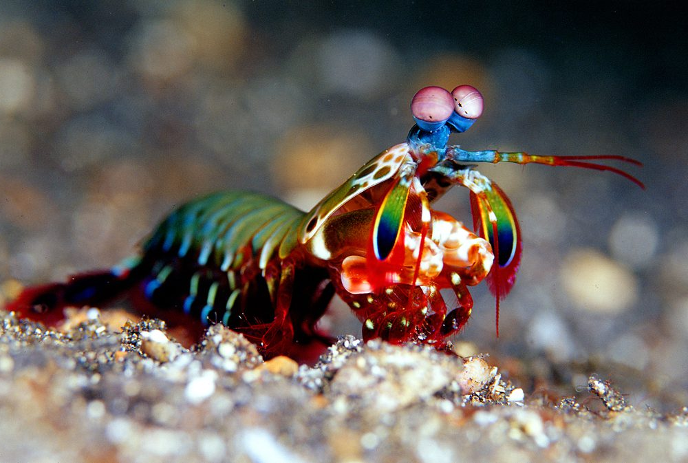 Выпуклые сложные глаза креветки-богомола на стеблях настолько невероятны, что кажутся нереальными. В отличие от глаз человека (и глаз большинства других животных, в том числе других членистоногих), глаза креветки-богомола не оснащены одиночными линзами, через которые свет попадает на сетчатку. Вместо этого светочувствительные рецепторные клетки на поверхности глаз креветок позволяют им обнаруживать длины волн света в видимом, инфракрасном и ультрафиолетовом спектрах.