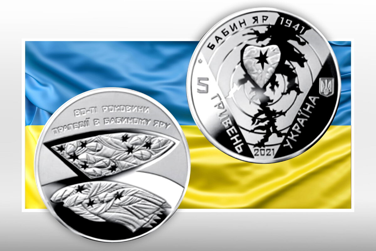 Национальный банк Украины 27 сентября выпустит памятные монеты 5 и 10 гривен посвященные 80-й годовщине трагедии в Бабьем Яру. На аверсе монеты размещены: малый Государственный Герб Украины (справа), под которым вертикальный надпись под углом Украина; слева номинал (вертикально под углом); в центре на фоне концентрических окружностей, напоминающих мишень, стилизованная композиция-пронизанное пулей сердце на фоне фрагмента топографического