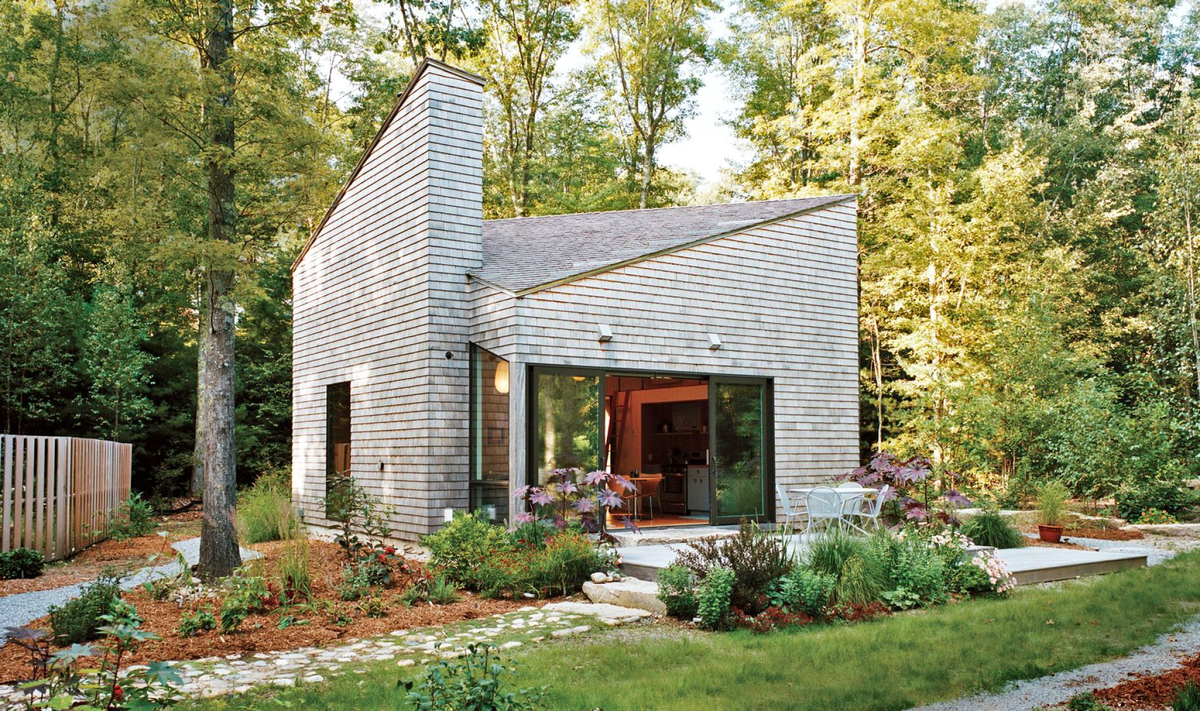 Снаружи постройку обшили дранкой из желтого кедра, забор вокруг дома — из красного кедра.