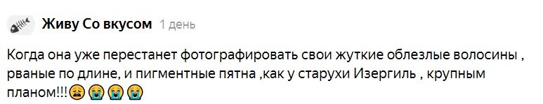 Веснушки у меня с детства, и когда я была маленькой, то надеялась, что с возрастом они исчезнут. Кто-то меня заверял, что у взрослых таких пигментных пятен не бывает. В возрасте около 8 лет я переживала, что у меня есть такая вот особенность. Веснушки казались чем-то некрасивым, хотя не помню, чтобы кто-то меня из-за них дразнил. Ещё и у подруг их не было, я даже им завидовала и тоже мечтала об идеальной коже. Потом, когда уже стала подростком, как-то забыла об этой особенности. Мне она совершенно не мешала, даже сейчас я, глядя в зеркало, не замечаю, что веснушки вообще есть. К слову, в холодное время года их вообще почти нет, а вот летом "выскакивают". Впрочем, ничего плохого в этом не вижу. Когда использую тональный крем, веснушки становятся практически незаметными. Так что, если начнут надоедать, выход есть. Зато вот некоторые люди на Дзене очень хорошо замечают чужие недостатки. Например, недавно увидела такой забавный комментарий обо мне. Вот так вот меня сравнивают со старухой