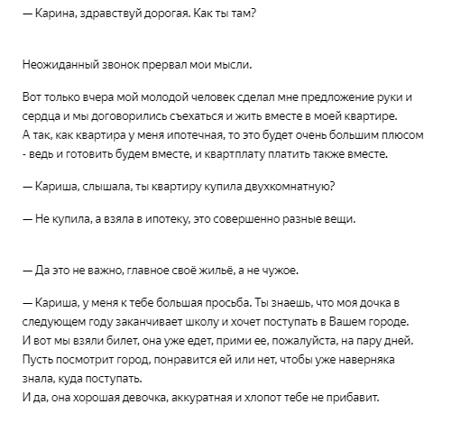 Я буду жить с Вами когда поступлю,- сказала племянница. Нет, я выхожу замуж. Ничего, я на кухне буду спать