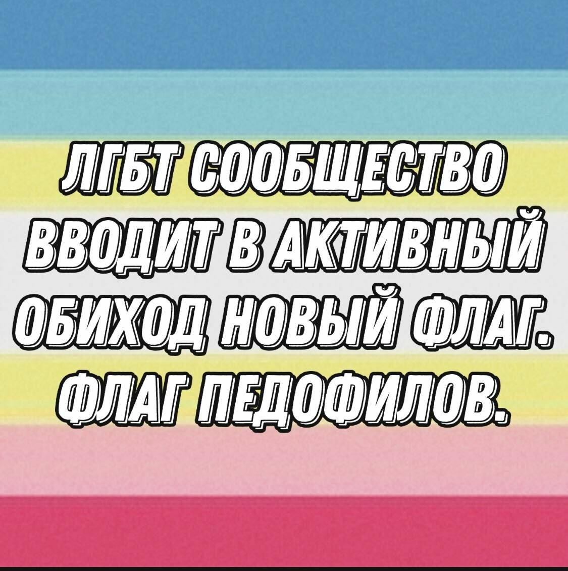 Если вы думали, что дальше уже некуда, то нет, вот ещё одна новость, которая всех потрясёт. У педофилов появился свой флаг и они причисляют себя к ЛГБТ+, лгбт-шники конечно пытаются как-то оправдаться, что они не имеют к этому никакого отношения, но разве не они топят за свободную любовь во всём мире? Мы более чем уверены, что ЛГБТ не только приняли к себе педофилов, но и зоофилов, и не удивлюсь, если никрофилов. Короче говоря, диагноз на лицо, и пусть после этого кто-то хоть попробует сказать, что ЛГБТ - это не болезнь.