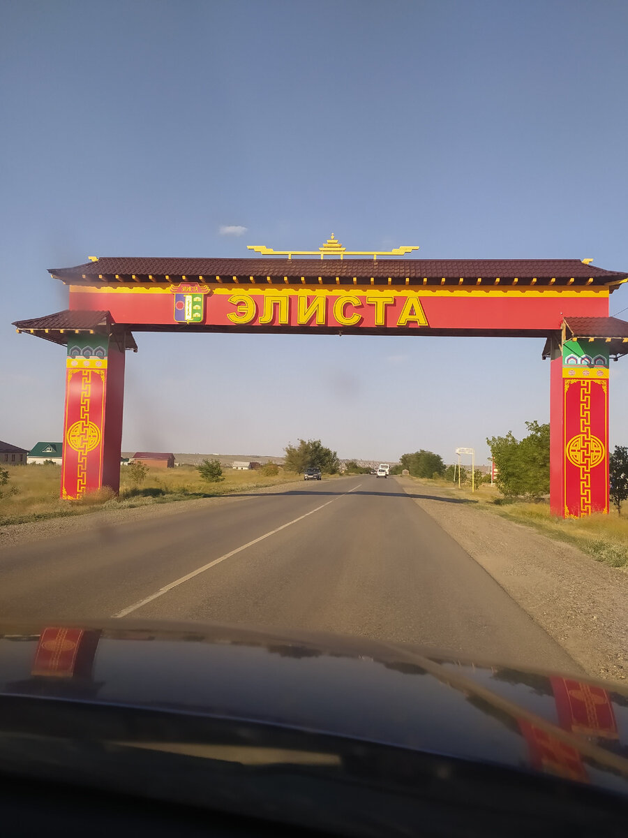 На въезде в город нас встречает этакая яркая арка с надписью "Элиста". надо отметить, что до этого по трассе, на подъезде к городу я не заметила указателей, что мы уже в городе. да и трасса довольно скромная для столичной.
