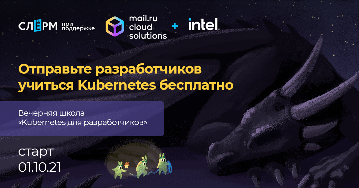 Осенние вечера — время забраться под плед с ноутбуком, взяв с собой любимый десерт с чаем. Слёрм при поддержке Mail.ru Cloud Solutions и Intel поможет провести эти вечера ещё и с пользой. 1 октября начнётся Вечерняя Школа Kubernetes для разработчиков. 24 онлайн-лекции и 22 практические работы в кластере MCS, и всё это бесплатно. Научим использовать преимущества и учитывать ограничения Kubernetes, поднимать инфраструктуру для тестирования и экспериментов, выкатывать и эксплуатировать сервис, не дожидаясь команды DevOps. Сможете быстро спасти продакшн и влиять на успешность сервиса, уменьшая time-to-market. Про первую Вечернюю Школу Kubernetes Вечерняя Школа Kubernetes — не пробный запуск, мы точно знаем, что делаем. Первый поток был в апреле 2020 года, мы увидели в таком формате возможность поддержать специалистов, и это вызвало интерес у IT-сообщества — на курс зарегистрировалось 7000 человек. Мы создали комьюнити с участниками, оно активно и сегодня. Спикеры усовершенствовали навык ра