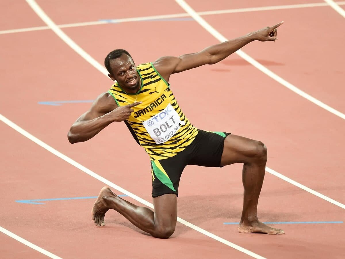 Усейн Болт - ямайский легкоатлет, специализировался в беге на краткие дистанции, восьмикратный олимпийский чемпион и 11-кратный чемпион мира (рекорд в истории этих соревнований между мужчин). За время соревнований установил 8 вселенских рекордов. На момент — обладатель мировых рекордов в беге на 100 — 9,58 с; и 200 метров — 19,19 с, а еще в эстафете 4×100 метров в составе сборной Ямайки — 36,84 с. Считается единым спортсменом, которому получилось выиграть спринтерские дистанции 100 и 200 метров на трёх Олимпиадах подряд (Пекин 2008, Лондон 2012 и Рио-де-Жанейро 2016). Владелец большего числа золотых олимпийских наград в истории спорта Ямайки. В настоящее время разделяет пространство со 2-го по 4-е по количеству золотых медалей, выигранных на Олимпийских играх между легкоатлетов. 1-ый в мире легкоатлет, выигравший 11 золотых наград на чемпионатах мира. Командор ямайского ордена Плюсы (2008) и кавале ордена Ямайки (2009). Родной язык спортсмена — ямайский креольский. По вероисповеданию