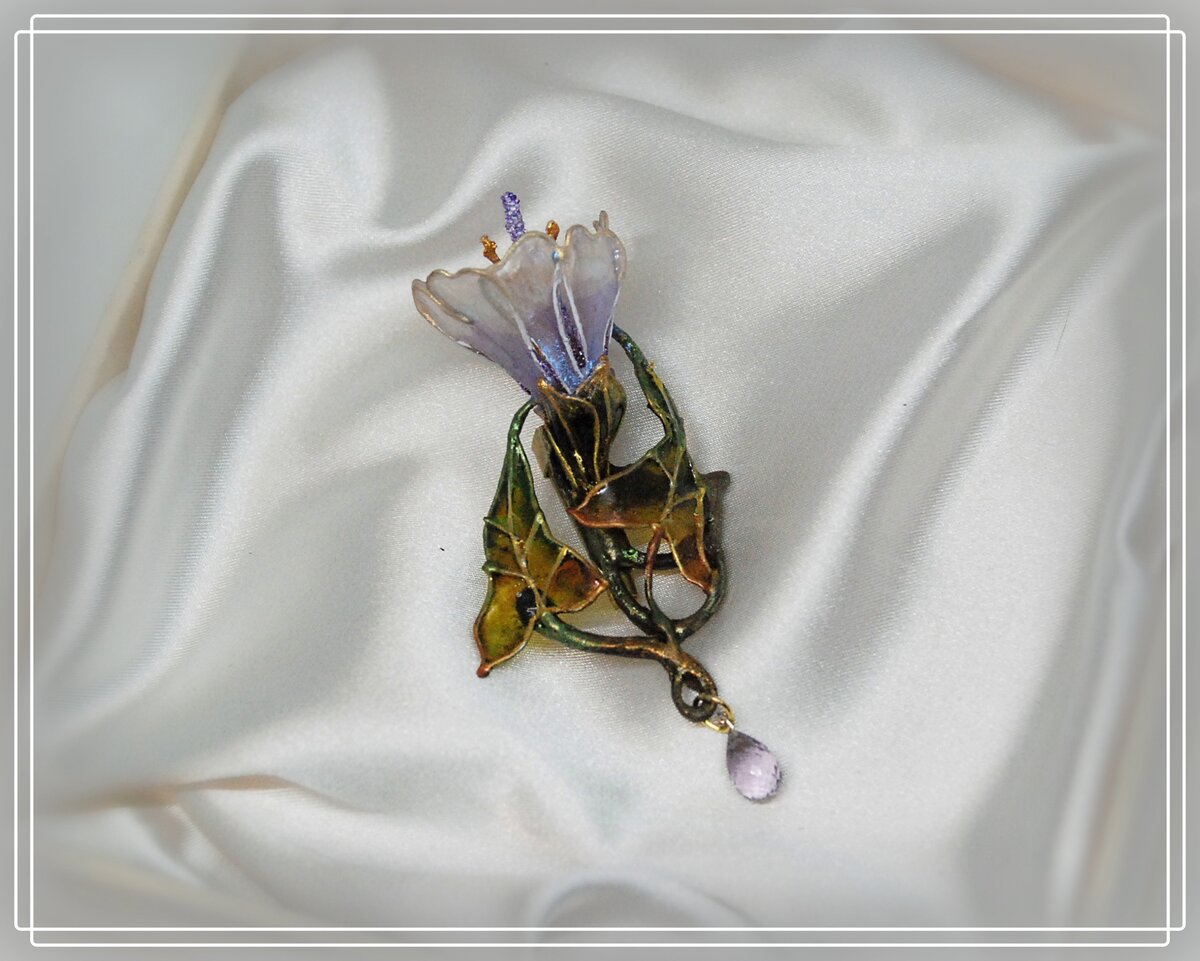 Само украшение я задумала довольно давно. Правда до последнего была уверена, что получится кулон, а вышла брошь. Необычность его в том, что сам цветок кажется живым, и в то же время, немного сказочным.