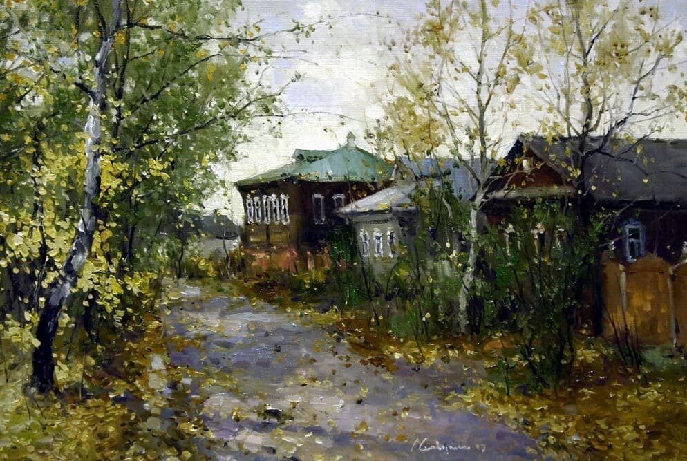 Потемнели срубы от воды, В колеях пузырятся потоки. Затянув кисейкою сады, Дробно пляшет дождик одинокий, Вымокла рябинка за окном, Ягоды блестят в листве, как бусы. По колоде, спящей кверху дном, Прыгает в канавке мальчик русый. Изумрудны рощи и сады. В пепле неба голубь мчится к вышке. Куры на крыльце, поджав хвосты, Не спускают сонных глаз с задвижки. Свежий дождь, побудь, побудь у нас Сей свое серебряное семя... За ворота выбегу сейчас И тебе подставлю лоб и темя.