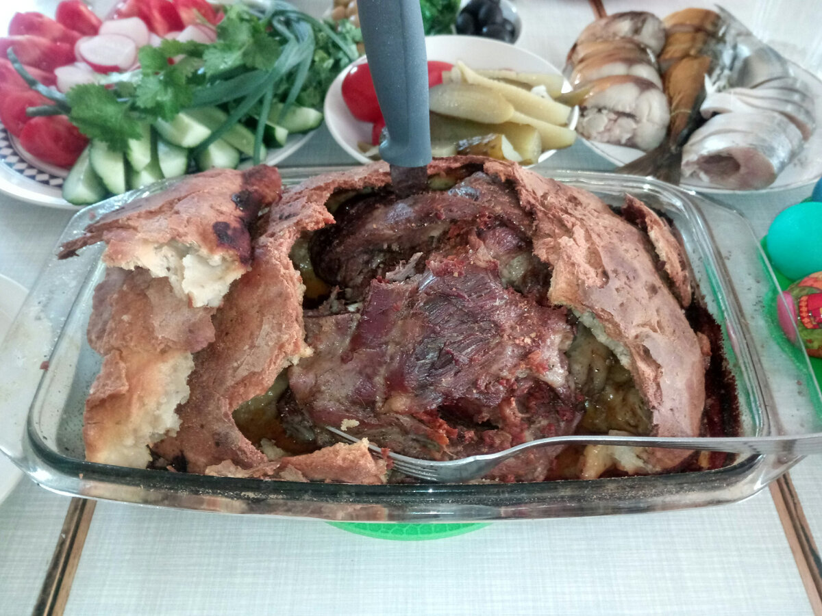 Как пишут в интернетах, рецепт этот известен еще с советских времен, но лично я о нем и слыхом не слыхивал. Но, в любом случае, я решил приготовить это "яйцо" на Пасху, что, собственно и показываю. "Яйцо" на яйцо не сильно похоже, тут, скорее всего не сильно крутое тесто сделал. Исправлюсь!