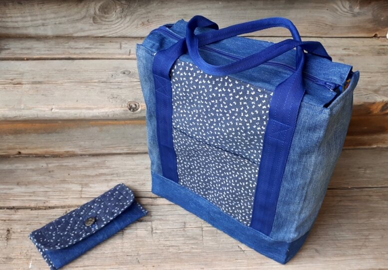 Мужские рубашки - это прежде всего отличная сорочечная ткань с приятным мелким рисунком, а еще она очень легкая и прочная, а про джинсы и говорить нечего. И вот из этих двух составляющих получилась отличная сумка для похода в магазин. Размер сумки в высоту составляет 35 см, в ширину 31 см, глубина - 12 см. В сумке два кармана - один снаружи, другой внутри. Для подклада я также использовала мужскую рубашку. Молнию для сумки лучше брать - спиральную, она мягкая и ее легко вшивать в джинсу. В комплект к сумке сшила еще и кошелек, подробный мастер класс по его пошиву можно посмотреть ЗДЕСЬ! Чтобы сумку было удобно переносить, в ручки из стропы вставила толстый шнур, за счет этого ручки не будут врезаться в ладонь. Вес у этой сумки всего - 360 гр, в конце видео-мастер-класса я ее взвесила и Вы можете сами в этом убедится)))))))) Если понравился мастер класс, то буду рада Вашим лайкам,а также тем, что Вы поделитесь им в соц.сетях. Интересное решение-совместить киперную ленту и ткань, в