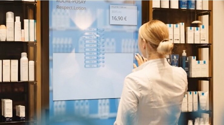Немецкая компания BD Rowa, занимающаяся разработкой автоматизированных систем обработки запасов для аптек и больниц, модернизировала аптеку Aquis в немецком городе Ахен. Проект включал автоматизацию склада и цифровизацию торговой площади. Теперь благодаря аптечному роботу фармацевт не будет оставлять клиентов на протяжении всей консультации. Оператор аптеки Aquis видит важность профессии фармацевта в определении проблем клиентов и возможности предложить им конкретные решения, основанные на своих знаниях. В новой концепции аптеки Aquis реализована возможность полной концентрации на клиентах. В клиентской зоне аптеки прилавки оборудованы сенсорными экранами, также имеется панорамная видеостена, которую можно использовать для демонстрации определенных рекламных предложений. Помимо автоматической системы комплектования заказов, в аптеке используется большая панорамная видеостена, состоящая из семи 55-дюймовых экранов Vmotion и трех 22-дюймовых экранов, встроенных в столы. Кром