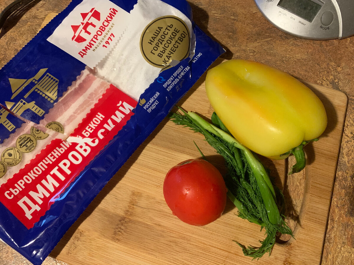 Овсянка - очень интересный продукт) мало кто любит ее в чистом виде. До сих пор эта каша вызывает у меня бурю эмоций) Польза и вред овсянки на самом деле до сих пор до конца и не изучены. С одной стороны в ней много клетчатки, которая способствует пищеварению и хорошей работе кишечника, с другой стороны в овсянке содержится фитиновая кислота. При долгом употреблении которой, из организма вымывается кальций. Однако речь не о том!) Меня эта крупа радует многообразием вариантов использования. И в фарш для фрикаделек добавляю…. писала об этом в статье про «хитрый» суп и для приготовления котлет. А сегодня расскажу о том как я готовлю омлет с овсянкой. Не путайте с овсяноблином. Таким популярным ныне блюдом среди худеющих) все ж таки там овсянка - основной ингредиент. Для омлета мне нужны любые продукты, которые есть в холодильнике) У меня сегодня это несколько ломтиков бекона, перец болгарский, помидор и зелень. Ну и яйца, конечно!) просто они не попали в кадр. Я взяла два небольш