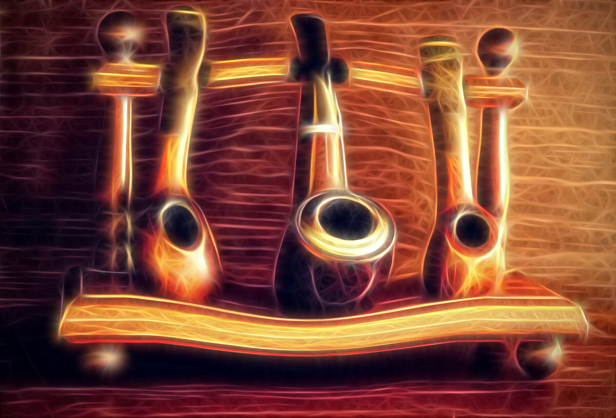Добрый день дорогие собратья по курению правильного и качественного табака, с помощью курительной трубки. Дело было летом, в перерывах между работой и не работой, на тот момент у меня во владении уже находилось 4 курительные трубки и встал актуальный вопрос где и как их хранить. И вот я решил «запелить» себе стойку/полку для хранения своих «прелестей». Результат вы увидите на фотографии. К сожалению на тот момент не догадался заснять процесс изготовления, но результат вроде неплохой. Состоит из следующих материалов: фанера 3.8 мм, деревянные палочки для суши -2 штуки, кусочек деревянной тонкой рамки, небольшое количество толстой кожи, шпаклевка по дереву, морилка красного цвета и обычный лак. Результат творчества на ваших глазах на ниже представленных фотографиях. Из минусов, очень быстро собирает на себе пыль, а в а стольном море эмоций от эстетического удовольствия. По времени данное «творение» заняло 1 день с учетом сушки шпаклевки, покраски и лака. Получилась вполне интересная