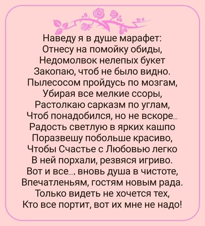 Наведу я в душе марафет... Этим стишком ну просто нельзя было не поделиться. Чтобы Счастье с Любовью легко в ней порхали