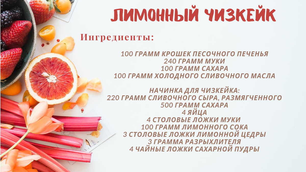 Ингредиенты: 100 грамм крошек песочного печенья 240 грамм муки 100 грамм сахара 100 грамм холодного сливочного масла Начинка для Чизкейка: 220 грамм сливочного сыра, размягченного 500 грамм сахара 4 яйца 4 столовые ложки муки 100 грамм лимонного сока 3 столовые ложки лимонной цедры 3 грамма разрыхлителя 4 чайные ложки сахарной пудры