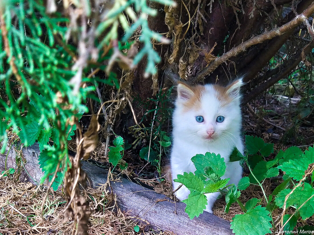 Котик у нас вполне освоился, исследует сад. Аппетит хороший