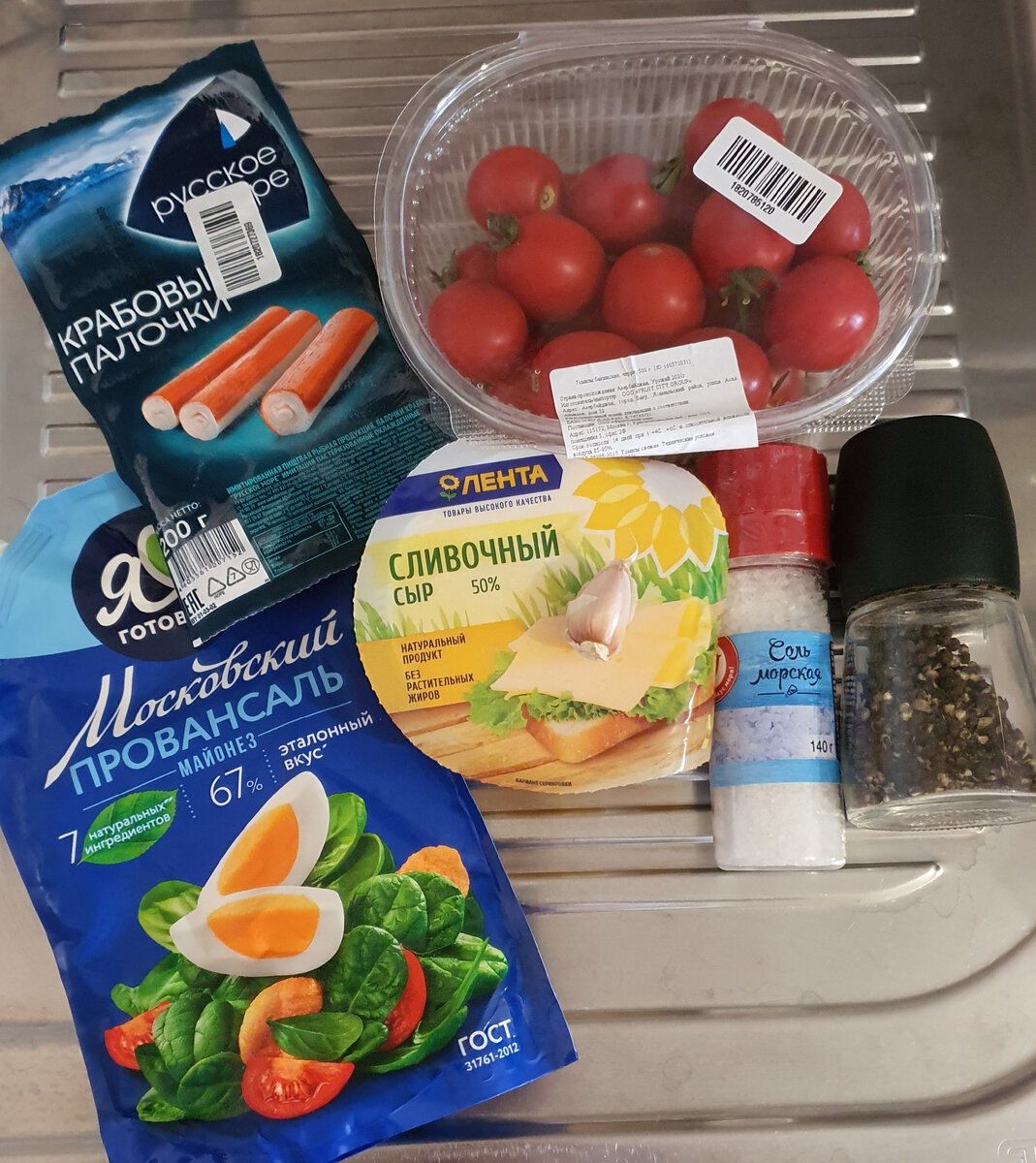 Необычный и очень быстрый в приготовлении салат из крабовых палочек.