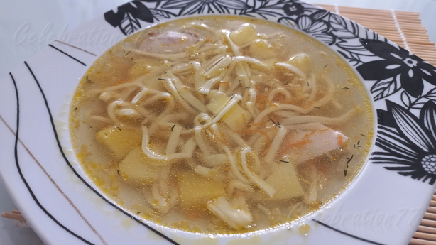 Блюда с домашней лапшой — настоящий символ уюта и кулинарных традиций. С ней можно приготовить не только суп, но и вторые блюда. Данный рецепт — отличная возможность сделать сытное блюдо для всей вашей семьи. Да, приготовление отнимает довольно много времени, но результат стоит того! Поэтому научиться готовить домашнюю лапшу с курицей стоит каждой хранительнице очага. В него входят простые ингредиенты, а еще его нетрудно приготовить: с рецептом справится даже начинающая хозяйка. Вкусный куриный суп с домашней лапшой отлично дополняет картошка, которая делает его более сытным, но при желании вы можете ее не добавлять, чтобы сделать более лёгкое блюдо. Ингредиенты: На 3-4 литра воды нам понадобится