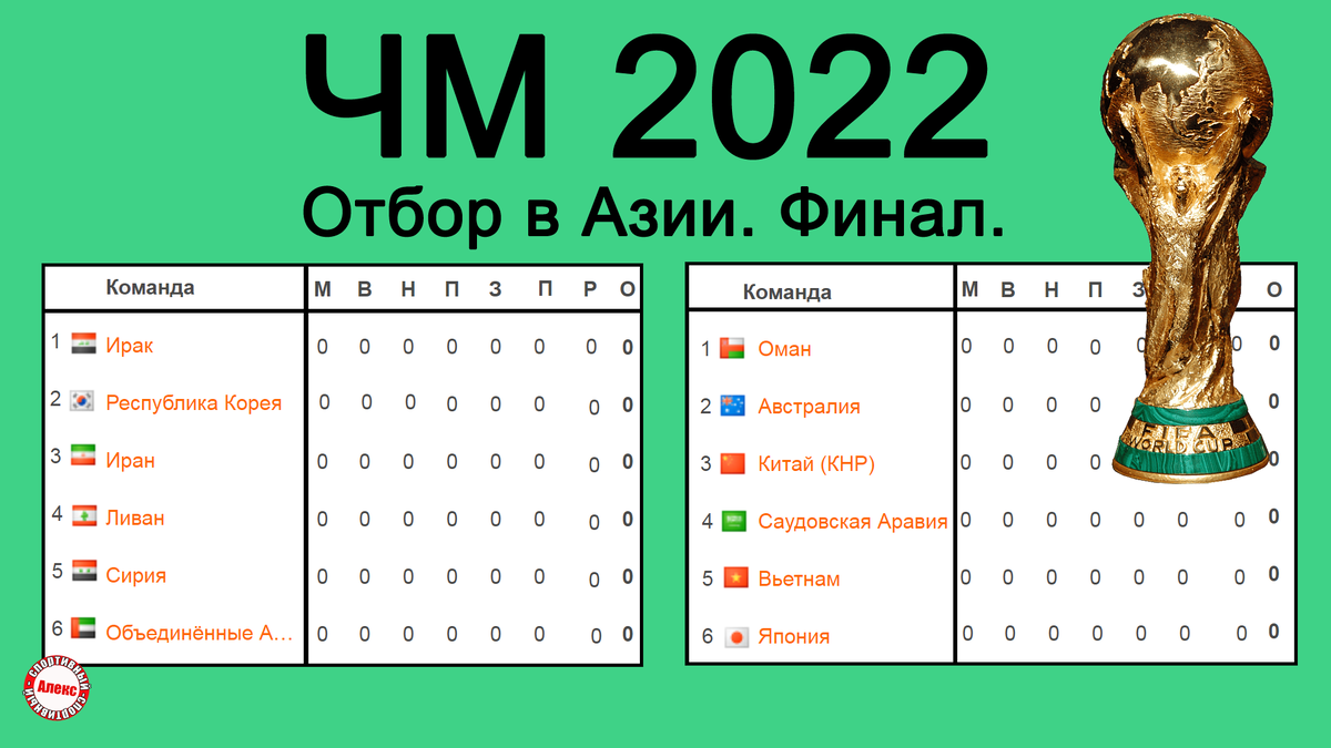 ЧМ 2022. Азия. 3 раунд. 1 тур. Результаты. Расписание. Таблицы.