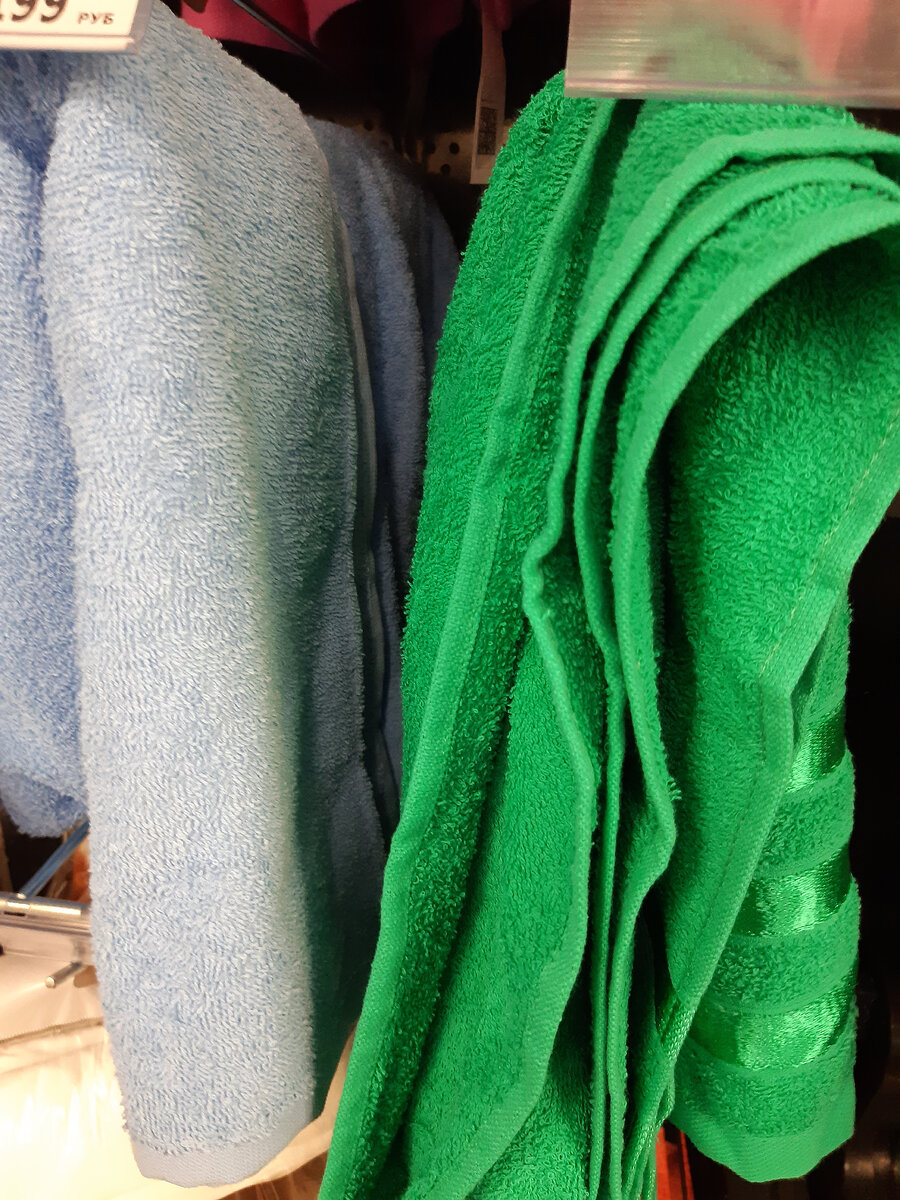 Полотенца махровые, цвет а представлены в ассортименте. В продаже имеется Три варианта размеров, как я поняла, однако точные размеры я не нашла. но полотенца различаются по стоимости: есть за 149 рублей, есть за 249 рублей, а есть 299 рублей. На ощупь обычные махровые полотенца, вполне себе нормальные. В других магазинах такие будут стоить дороже, взять хотя бы тот же Максидом. Так что если понравились расцветки, то присмотритесь.