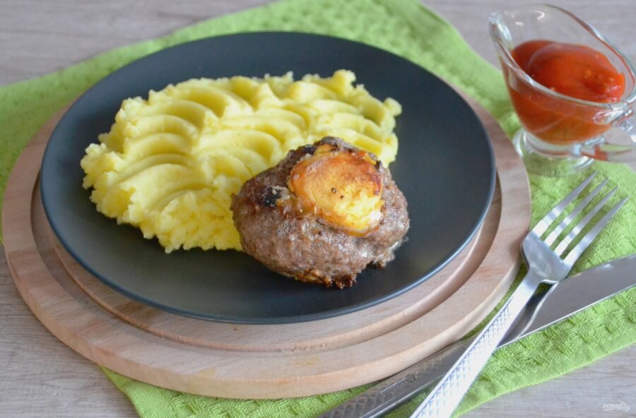 Котлеты по-татарски — вкусное и простое горячее блюдо. Ингредиенты 1. Говядина — 500-600 Грамм 2. Лук репчатый — 1 Штука 3. Яйца (желток) — 4 Штуки (количество яиц равно количеству котлет) 4. Масло растительное — 50 Грамм (для жарки) 5. Соль — 1 Щепотка (или по вкусу) 6. Черный молотый перец — 1 Щепотка (или по вкусу) 7. Хлеб — 50 Грамм (по желанию) 8. Панировочные сухари — 3-4 Ст. ложек Количество порций: 4 Как приготовить 1. Подготовьте ингредиенты. 2. Прокрутите фарш через мясорубку вместе с репчатым луком 1-2 раза. 3. Фарш посолите, поперчите, при желании добавьте хлеб, размоченный в воде или молоке. 4. Отделите яичные желтки, их количество равно количеству приготовляемых котлет. 5. Сформуйте котлеты, обваляйте их в панировочных сухарях. 6. Сделайте в котлетах углубление. 7. В углубление выложите яичный желток. Выложите котлеты на разогретую сковороду с растительным маслом. Жарьте на среднем огне под крышкой. Перед тем, как котлеты перевернуть, убедитесь, что желток уже