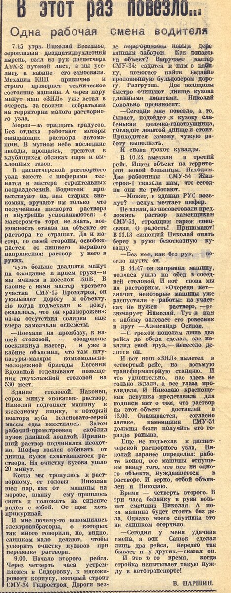 Сегодня предлагаю вашему вниманию три газетных материала за 1972 год. Внизу рассказ об одной рядовой рабочей смене водителя ЗИЛа на строительстве КАМАЗа, опубликованная в газете «Камские Зори» 20 января 1972 года. Что после тяжёлой работы предлагали Набережные Челны строителю КАМАЗа? Об этом можно прочесть в газете «Знамя Коммунизма» от 12 февраля 1972 года. Внизу на фотографиях улица Гидростроителей. Начало 1970-х годов. Внизу стихотворение Феликса Чуева, опубликованное в газете «Социалистическая Индустрия на строительстве Камского автозавода» от 7 сентября 1972 года.