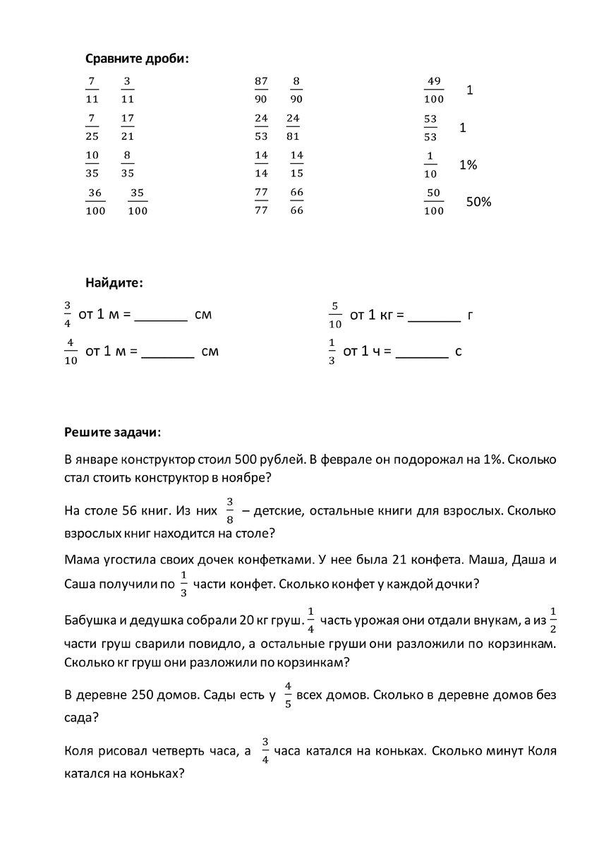 Подготовила для дочки такие упражнения. Еще писала про дроби для четвероклассниклв здесь.