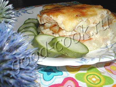 Желательно сделать запеканку многослойной - повторить слои ещё раз в той же последовательности. Поставить в разогретую до t=220°C духовку на 20 минут. Источник: https://www.good-cook.ru/vt