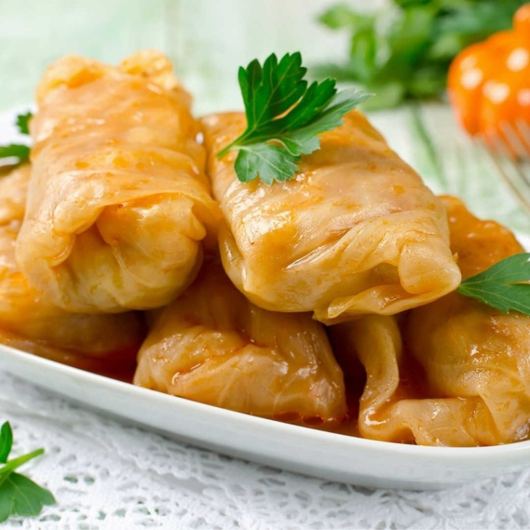 Ингредиенты: Свиной фарш — 300 Грамм Лук репчатый — 3 Штуки Морковь — 1 Штука Капуста — 1 Штука Томатный сок — 200 Миллилитров Рис — 100 Грамм Соль — 1 Чайная ложка Перец душистый молотый — 1 Щепотка Количество порций: 5-6 Подготовьте все необходимые ингредиенты. Особо внимательно выбирайте капусту, она должна быть не тугой и достаточно мягкой, тогда листы будут хорошо отходить. Морковь натрите на крупной терке. Лук нарежьте как можно мельче. Третью часть лука оставьте для томатной заправки, а остальное обжарьте вместе с морковью в подсолнечном масле до мягкости. Рис отварите до полуготовности. Для этого вскипятите 150 мл. воды, всыпьте рис и варите до выкипания жидкости. Заранее приготовленный фарш смешайте с рисом, добавьте необходимое количество соли и перца. Всыпьте пассерованные лук и морковь. Хорошенько все перемешайте до однородного состояния. В капусте вырежьте кочерыжку. Ее можно сразу выбросить, она нам не пригодится. Опустите капусту в кастрюлю с кипящей в