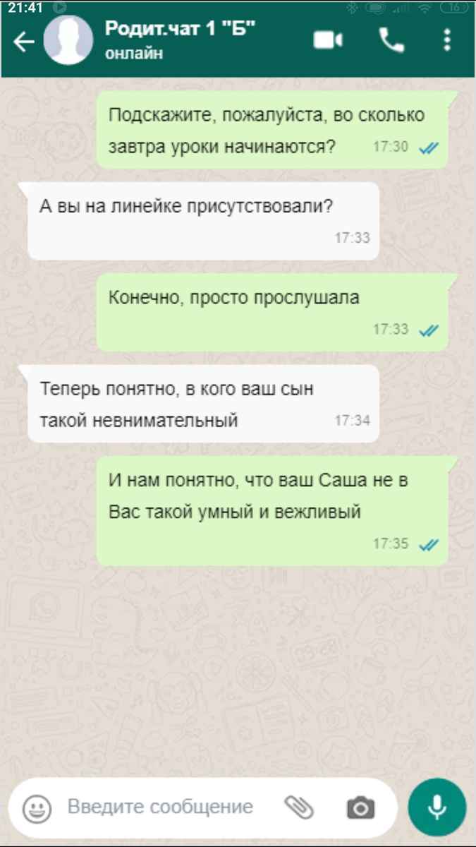 Наступил новый учебный и год и большинство родителей снова погрузилось в мир виртуального, но не очень желанного общения в чатах школ и детских садиков. Хорошо было раньше, и про домашнее задание можно было приврать, и листы с двойками из дневника выдернуть. А теперь каждый проступок и событие выносится на обсуждение в интернете. И ведь не только дети страдают, но и родители оставляют в школьных чатах немало нервов и времени. Хотя иногда складываются и забавные переписки между мамами, папами и учителями. Папы в чате — это отдельный вид общения, часто смешно и увлекательно. Самые конфликтные переписки — сбор денег на подарки, шторы и прочее-бесконечное. Ну и конечно же, обсуждение праздников и выпускных, тут можно общаться бесконечно и ничего не решить. Терпения родителям, хорошего учебного года детям! Подписывайтесь на канал, ставьте лайки, спасибо!