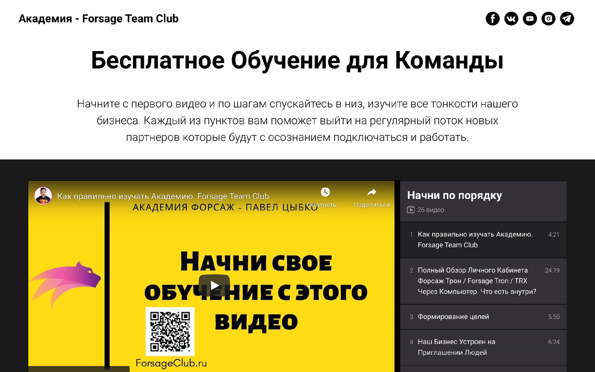 А ты знал, что у нас есть обучение для команды. Два вида, бесплатное для всех желающих узнать как работает бизнес, команда, криптовалюта, какие у нас есть воронки и как они работают, старт для начинающего онлайн бизнесмена. И по закрытым ссылкам обучение только для команды, Как создать бесконечный поток входящих, палатный и бесплатный трафик. 🧠 Ссылка на Академию - https://forsageclub.ru/academy