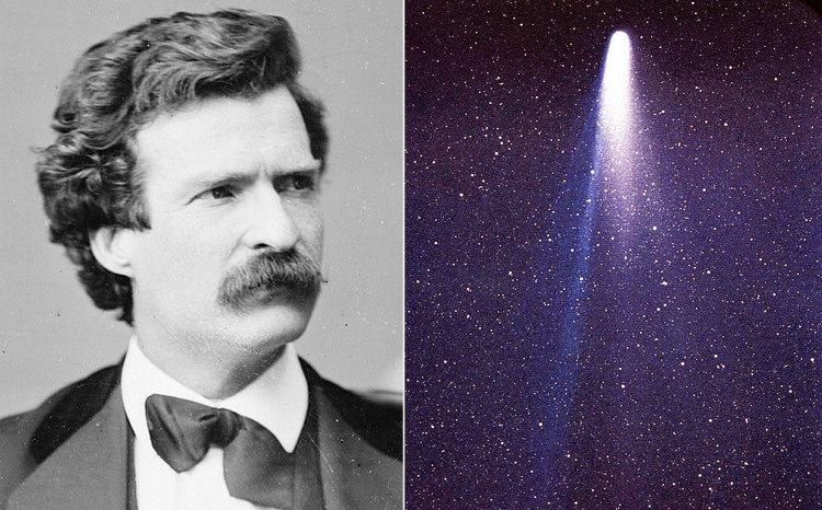 Марк Твен родился 30 ноября 1835 года, ровно через две недели после того, как комета Галлея достигла своего перигелия. В более поздней жизни он пережил период депрессии из-за смерти дочери, жены, сына и близкого друга. В 1906 году он начал писать свою автобиографию в « North American Review», в которой писал: «Я пришел с кометой Галлея в 1835 году. Она снова появится в следующем году, и я рассчитываю выпустить ее. Если я не выйду с кометой Галлея, это будет величайшим разочарованием в моей жизни ». Как он и предсказывал, он умер от сердечного приступа 21 апреля 1909 года, на следующий день после возвращения кометы.
