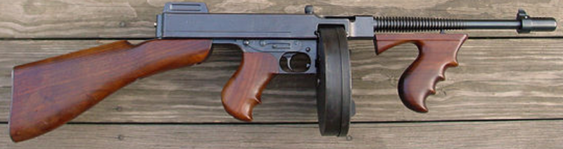 Страна-производитель - США Тип патрона - .45 ACP (11,43×23 мм) Длина - 810 mm Длина ствола - 267 mm Масса - 4,8 kg Вместимость магазина - 20, 30, 50, 100 патронов Скорострельность - 700 выстр./мин Прицельная дальность - 100 m История пистолета-пулемета Thompson M1921 начинается в годы Первой мировой войны. Условия позиционных боев 1915—1917 гг. поставили перед конструкторами вооружений новые задачи, которые надо было решать. Первыми пистолетами пулеметами в истории оружия были итальянские Villar—Perossa и немецкие МР 18. Они быстро показали все достоинства нового типа вооружения. Джон Томпсон создал первую модель пистолета-пулемета в 1917 г., но военные (точнее, командование Корпуса морской пехоты) отклонили предложение, так как сочли модель бесперспективной. Однако конструктор не оставил идею и продолжил работу. В 1921 г. пистолет-пулемет все-таки вышел из стадии проекта и был направлен в производство. Оружием сразу заинтересовалась полиция; армия США новинку на вооружение брать