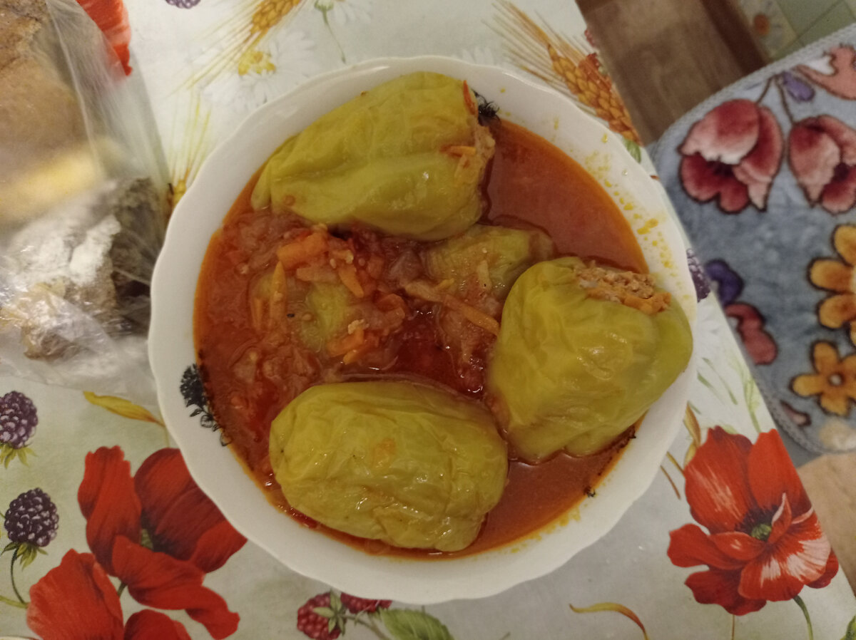 Очень сытный фаршированный перец с пикантной подливой