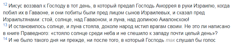 Очень часто от верующих можно услышать, что все, что написано в Библии - это истина, надиктованная пророкам самим Богом. Однако в тексте Библии можно найти явные противоречия и расхождения, которые ставят под сомнения ее достоверность. 1. Иисус Навин остановил солнце Много веков считалось, что солнце вращается вокруг земли. В XVI веке Николай Коперник доказал, что напротив земля вращается вокруг солнца. Кроме этого доказано, что земля вращается вокруг своей оси (суточное вращение земли) из-за этого происходит смена дня и ночи, а люди любуются рассветами и закатами, но визуально нам кажется, что движется именно солнце. Но Библия утверждает, что библейский персонаж Иисус Навин смог остановить само солнце и луну, ради победы в битве (Иисус Навин 10 глава). Кстати, реальное движение светила вокруг своей оси можно увидеть только при увеличенной и ускоренной съемке, а его период вращения составляет около 25 суток. Чтобы визуально казалось, что солнце стоит на месте Иисусу Навину потребовалос