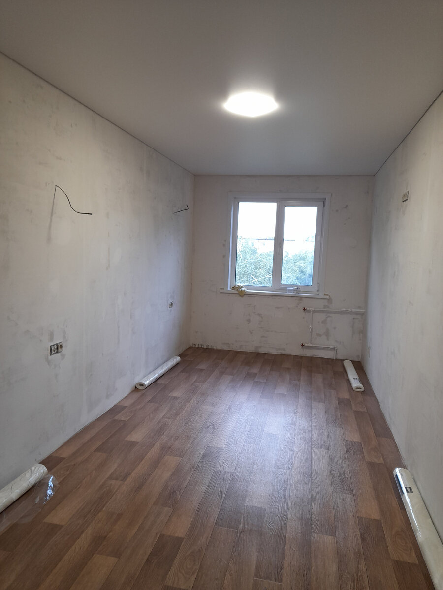 Не так давно мы делали полный ремонт 2-х комн. квартиры и, мне понравились светлые обои, которые заказчица выбрала для своей маленькой спальни. И вот, спустя месяц, мы с мужем решили сделать ремонт у себя в комнате. Окно в ней выходит на север, поэтому там практически никогда не бывает солнечного света, к тому же она длинная и узкая. И вариант, который мне понравился - идеально подходит для такого помещения. Виниловые обои тисненные на флизеиновой основе "Аспект ру 70326-16", я заказала на Яндекс Маркете. Сначала мы сняли старые обои, затем муж провел кабель для светильников, перенес розетки, выключатель. Затем все стены заштукатурили, зашпаклевали, прогрунтовали, установили натяжной сатиновый потолок и постелили линолеум. Я хотела бы конечно светлый, но у нас во всех остальных комнатах цвет дерева, чтобы не пестрить купили такой же. Вот так выглядела наша спальня после вышеописанных работ. Когда мы делали ремонт в "двушке", то я боялась, что светлые обои будут просвечивать и шпакл