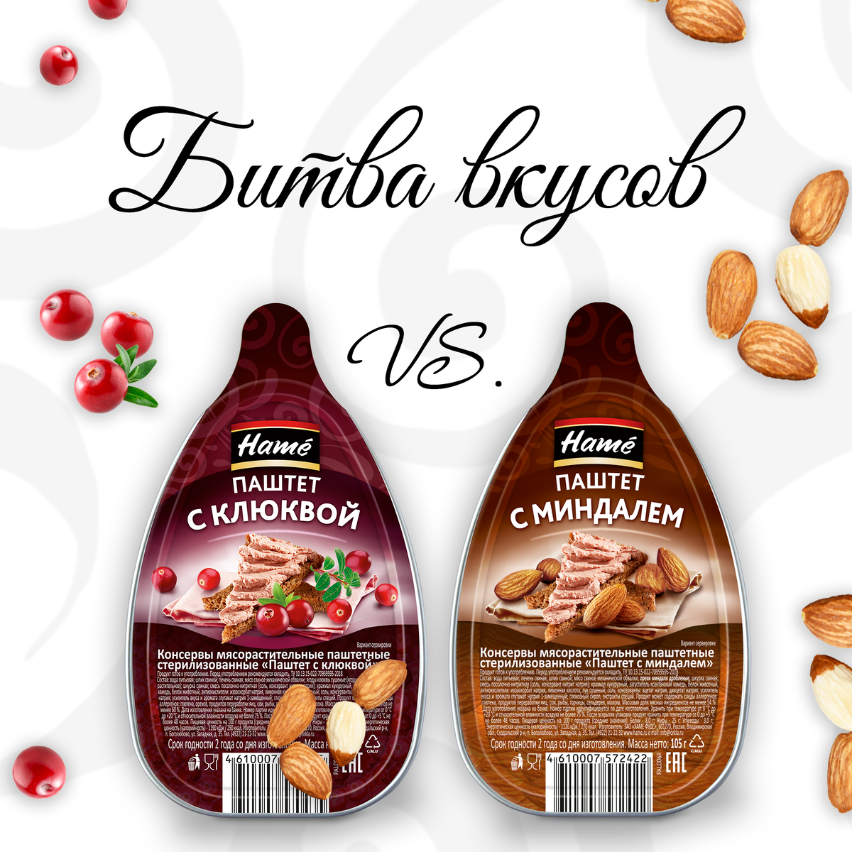 Подошло время заключительной битвы вкусов среди наших новинок! На закуску мы оставили паштеты с самыми, наверное, изысканными ингредиентами 👨🏻🍳 Каждый подойдет и для особенного ужина, и для завтрака в кругу семьи. Какой вкус ближе именно вам? Северные мотивы с клюквой или нотки высокой кухни с миндалем? Пишите в комментариях 👇 #hamé #новинки #клюква #миндаль #паштет #рецептызакусок