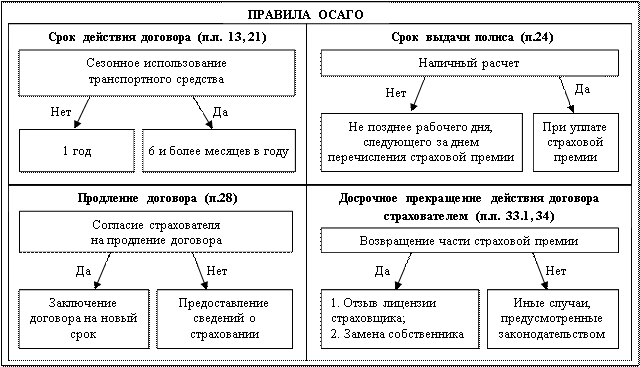 Важными с точки зрения учета расходов на ОСАГО юридическими лицами являются разделы IV - VI Правил, основные положения которых представлены нами ниже в виде схемы.