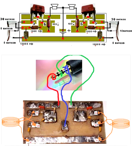 простое радиоуправление *** варикап на транзисторе * Катушка L1 бескаркасная, она содержит 5 витков провода ПЭЛ или ПЭВ диаметром 0,6-1 мм, намотанных на оправке диаметром 7...8 мм. Подобрать необходимую индуктивность можно, растягивая или сжимая витки при настройке. с этой 8 мм 0.2мгн геометрией 15пф 90мгц ** 2.2пф 240мгц 8мм 0.14мгн 15пф 110мгц 2.2пф 290мгц реально 0.6мм толщ шаг 1мм диам 7мм 0.18мгн 15пф 97мгц 2.2пф 250мгц https://coil32.ru/calc/jslcc.html https://coil32.ru/calc/one-layer.html Для витой пары из проводов диаметром 0,15 мм (не знаю, какие ПЭЛ или ПЭВ) с одной скруткой на 1 мм длины, имеем: - длина скрутки 500 мм - ѐмкость для вытянутых проводов 55 пФ - ѐмкость для свѐрнутых проводов 58 пФ - ѐмкость после пропитки воском 91 пФ Можно подсчитать, что для вытянутой витой пары проводов получается погонная ѐмкость 1,1 пФ на 10 мм длины. Для витой пары из проводов диаметром 0,38 мм с одной скруткой на 2 мм длины, имеем: - длина скрутки 100 мм - ѐмкость для вытянутых пров