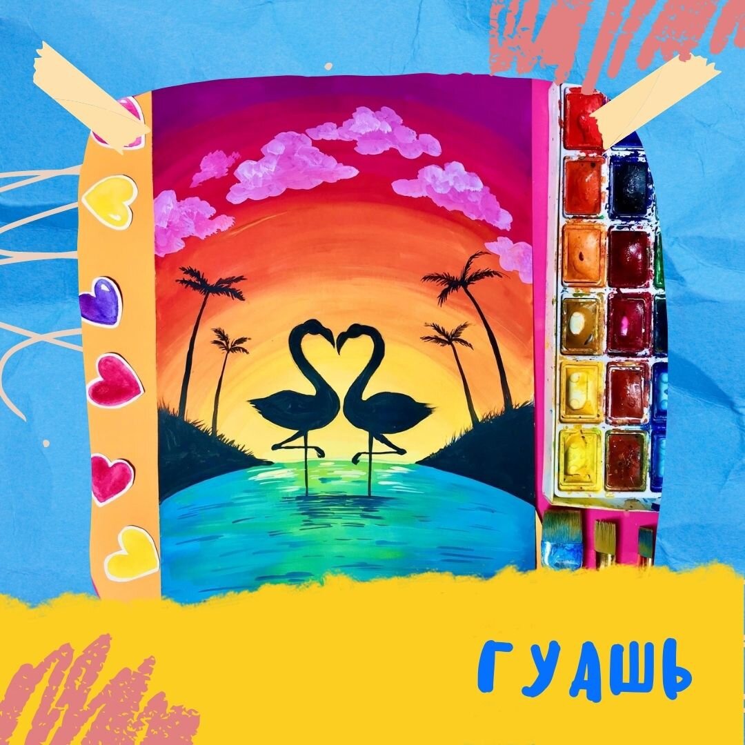 Гуашь удобна для новичка. Она дешевле акварели или масла и расходуется достаточно экономно. И краскам на водной основе не требуются разбавители. Материалы: Писать гуашью можно кисточкой с плоской жесткой щетиной, она лучше всего распределяет краску и берет немного воды. Для проработки мелких деталей или при желании сделать менее густую консистенцию краски можно использовать более мягкую кисть. Чаще всего гуашью пишут на бумаге средней плотности 200 – 260 г/м2, но в качестве холста может использоваться и дерево, ткань, картон. Этапы работы: Сначала наносится карандашный набросок. Затем переходим к смешению красок. Емкость с водой и палитра должны быть под рукой. Подбирать цвета необходимо на палитре, чтобы картина не получилась неопрятной. Работа краской идет от темного к светлому: сначала наносятся более темные цвета, которые потом, где надо, перекрываются более светлыми оттенками. В случае ошибки с цветом ее легко исправить, наложив новый слой. Но делать это лучше когда краска высохла