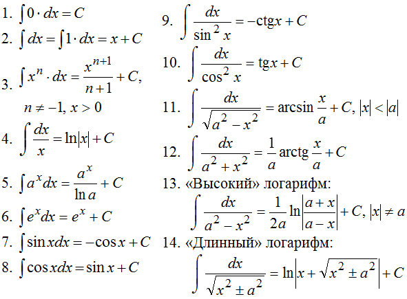 1) знать таблицу интегралов
