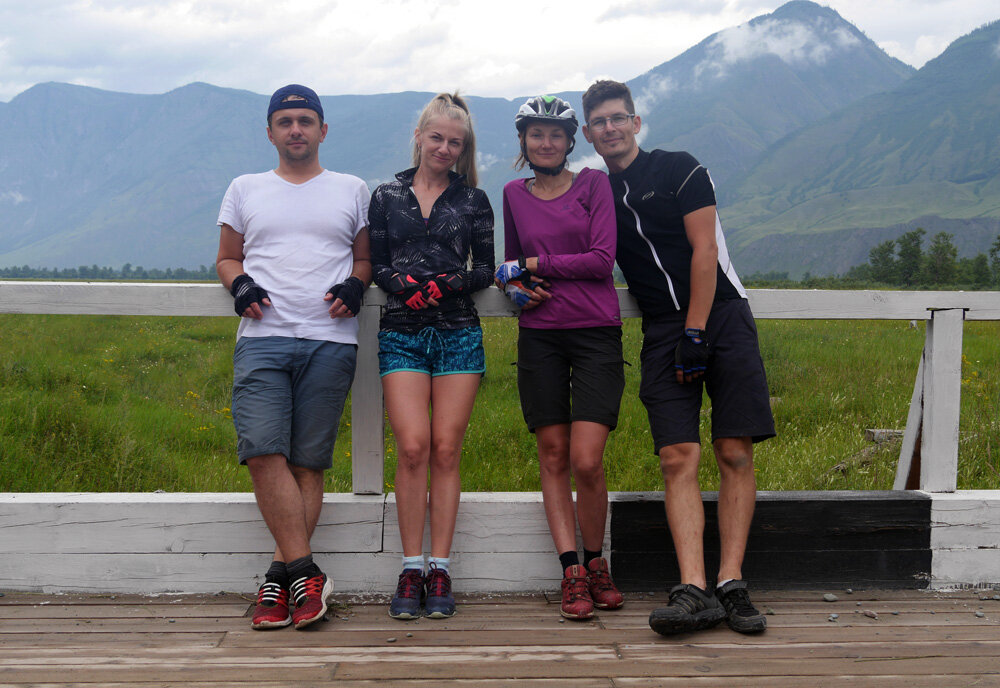 Туда мы доехали под вечер, закупили еды в магазине. Друзья захотели посушиться в гостевом доме, а мы решили поставить палатку за посёлком. Со стороны гор к нам быстро приближалась гроза. Не успев даже отъехать подальше от домов, начали быстро собирать лагерь на высоком берегу реки. Ветер усилился и выгибал палатку во все стороны, резко полил сильный дождь. Велосипеды мы прислонили к деревьям на краю обрыва и Макс (сразу после слов: «надо всё фиксировать») в спешке кинул спальник на землю. Спальник полетел вниз к реке. Хорошо, что ещё не стемнело. Не увидев как спальник упал в воду, Макс решил попытаться его спасти и по крутому спуску полез вниз. Я, вся мокрая, проглатывая слезы, перекидала вещи в палатку и ждала его наверху. Он вылез со спальником. Уставшие и живые мы залезли в палатку, переоделись в сухую одежду и приготовили в тамбуре себе поесть. Гроза ушла в сторону, ветер стих, а дождь стал умеренным. Возможно, нам надо было просто переждать какое-то время в укрытии и потом уже ставить палатку ( и не паниковать), но тем не менее всё закончилось хорошо и сейчас мы вспоминаем эту ночевку как одну из самых запоминающихся в походе. Спальник за ночь просох, но утром его ждали новые приключения!