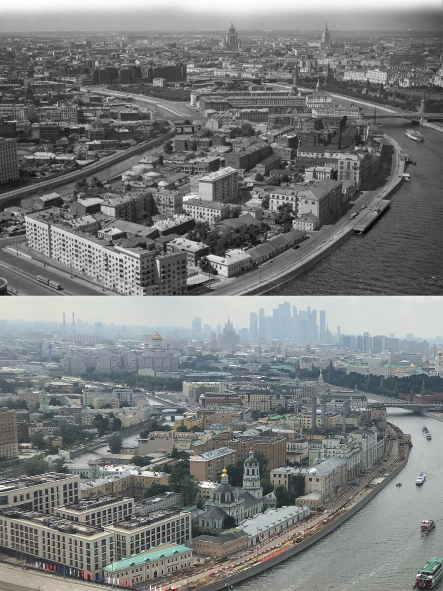 Вид на Москву с высоты птичьего полета в 1960 году и 2021 году! #209