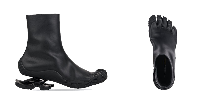 Ранее представленная в коллекции Дома Pre-Fall 2021, обувь была создана в сотрудничестве с Vibram. Ботинки изготовлены из мягкой черной телячьей кожи и имеют дизайн «пять пальцев». Между тем, подошва из материала TPU Vibram, украшенная брендом Balenciaga, обеспечивает уверенную посадку стопе. Ботинки Toe Bootie по цене $1590 теперь доступны для предварительного заказа на сайте и в бутиках Balenciaga.
